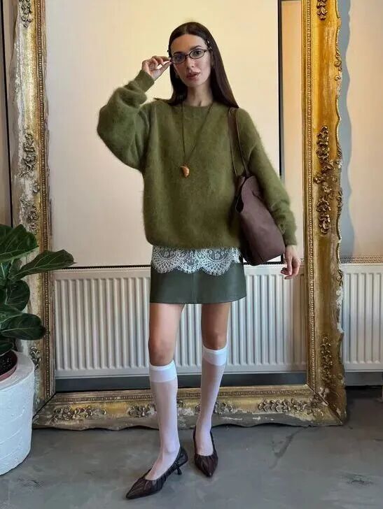 避免彩色内搭孤立,用围巾链接色彩轨迹;细节呼应更显审美:同色包包让造型精致,彩色帽子吸引视线显高提气色,内搭与下装撞色(如绿毛衣+粉半裙)让造型鲜活,外搭大地色系更稳重。