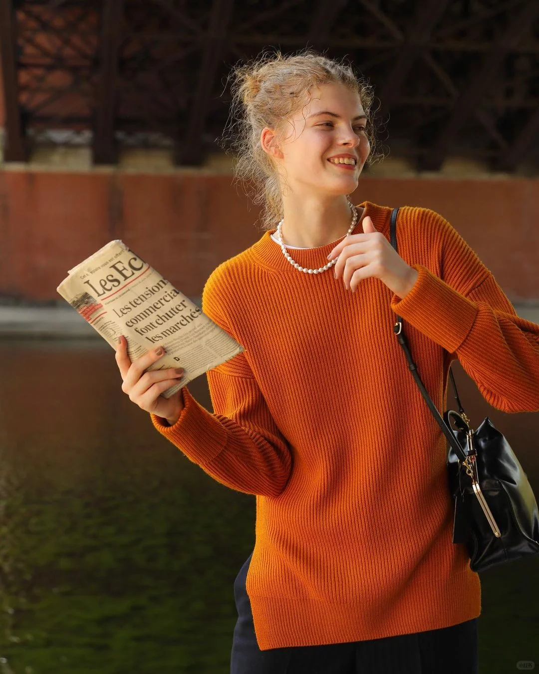 彩色毛衣虽好,选对颜色方能锦上添花——这不是硬性规则,而是衬托与提亮的游戏:冷白皮推荐薄荷绿、冰蓝色等清冷浅色;暖黄皮选姜黄色、铁锈红等大地夕阳色调;所有肤色都能驾驭经典正红、克莱因蓝、复古墨绿