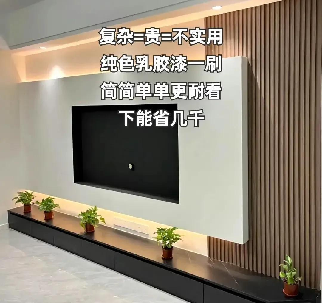 · 正确做法: 直接刷一层有色乳胶漆(太空漫步、杏子灰等网红色很出片),或者做一面简约的储物柜。成本低、颜值高,后期搭配投影幕布或装饰画,风格随意换。