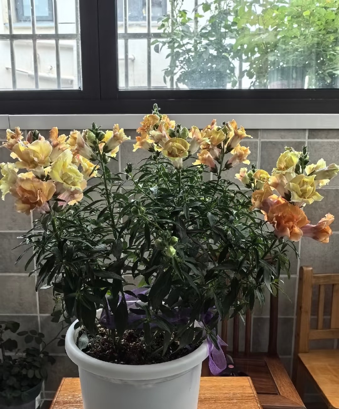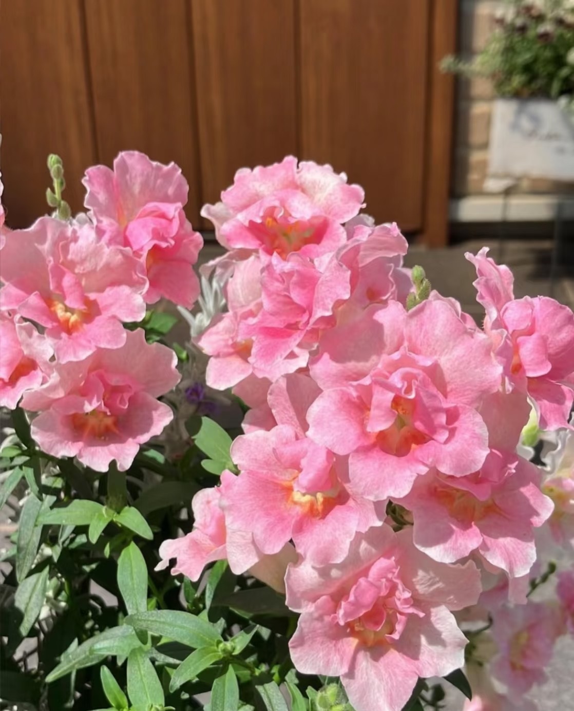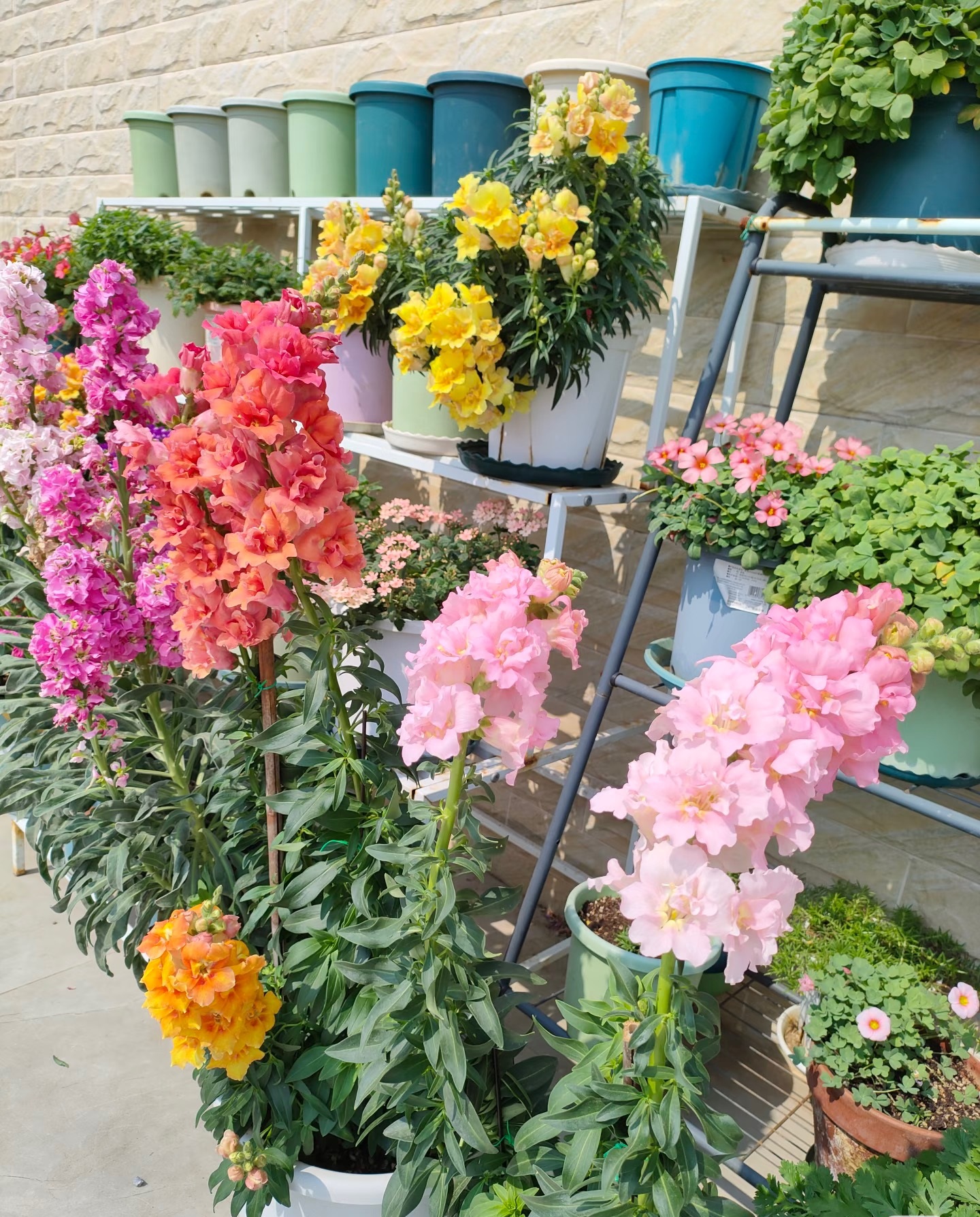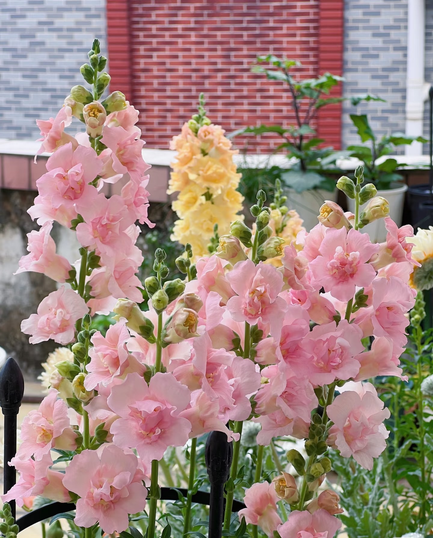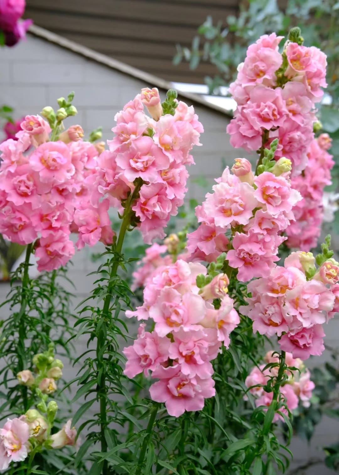重瓣金鱼草有两个“版本”,一个是高个子的,株高能达到40-50厘米,叫“切花金鱼草”,主要用于鲜花花材供应;一个是矮一点的,只有20-35厘米高,主要用于盆栽观赏。家里有院子、能够地栽的可以选择前者,阳台花友就选后者,不占地方,巴掌大的花盆就能养。