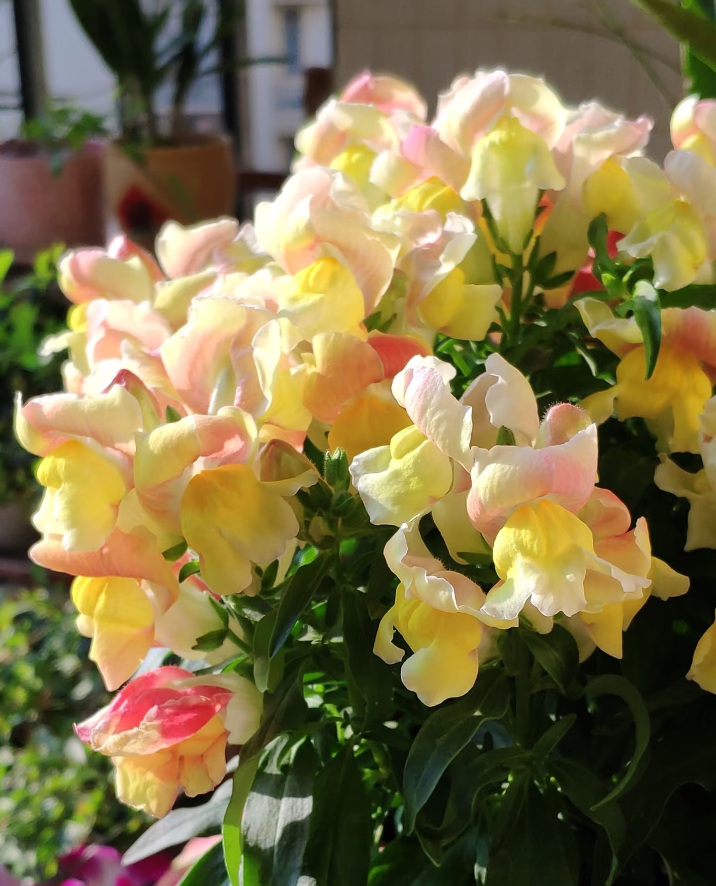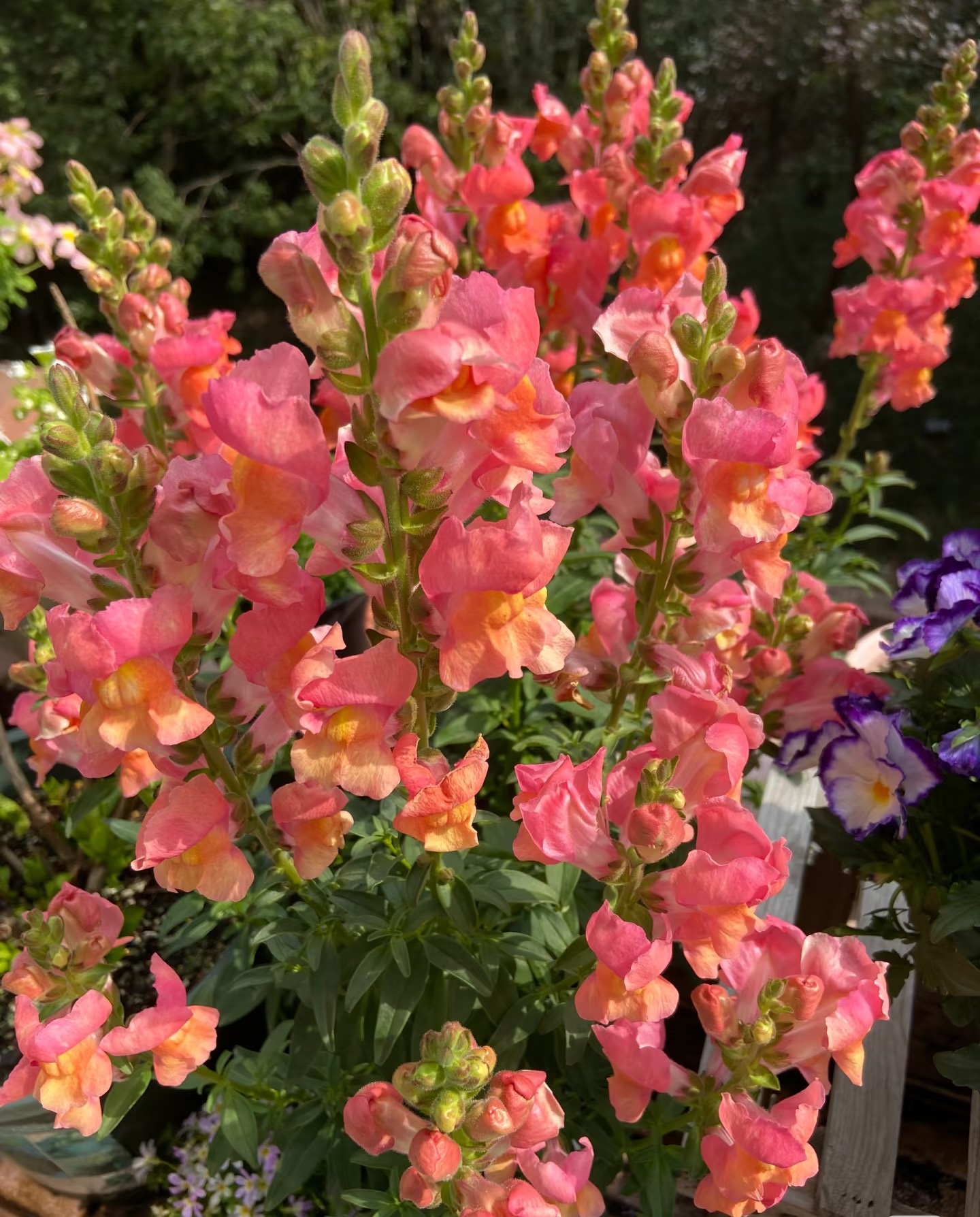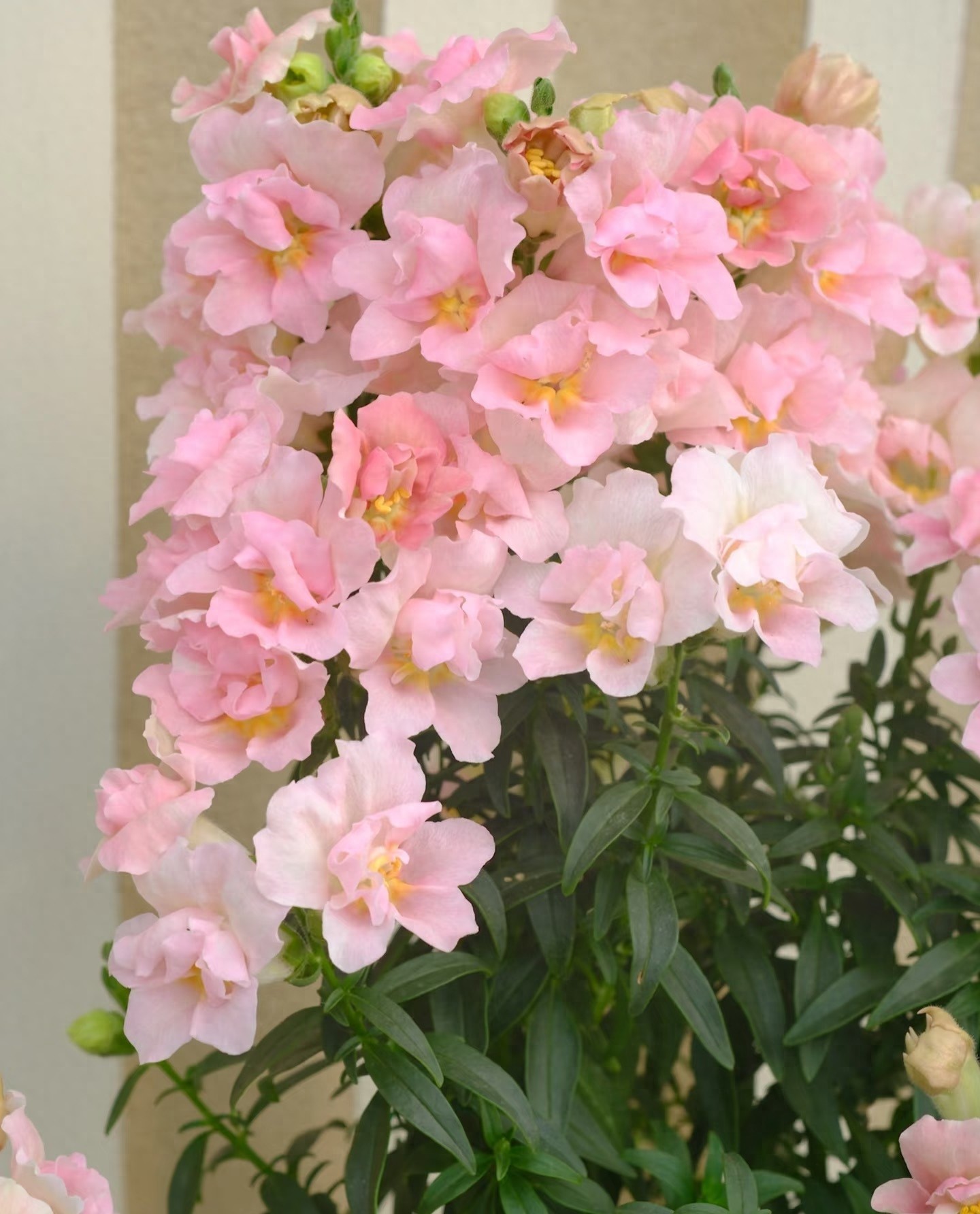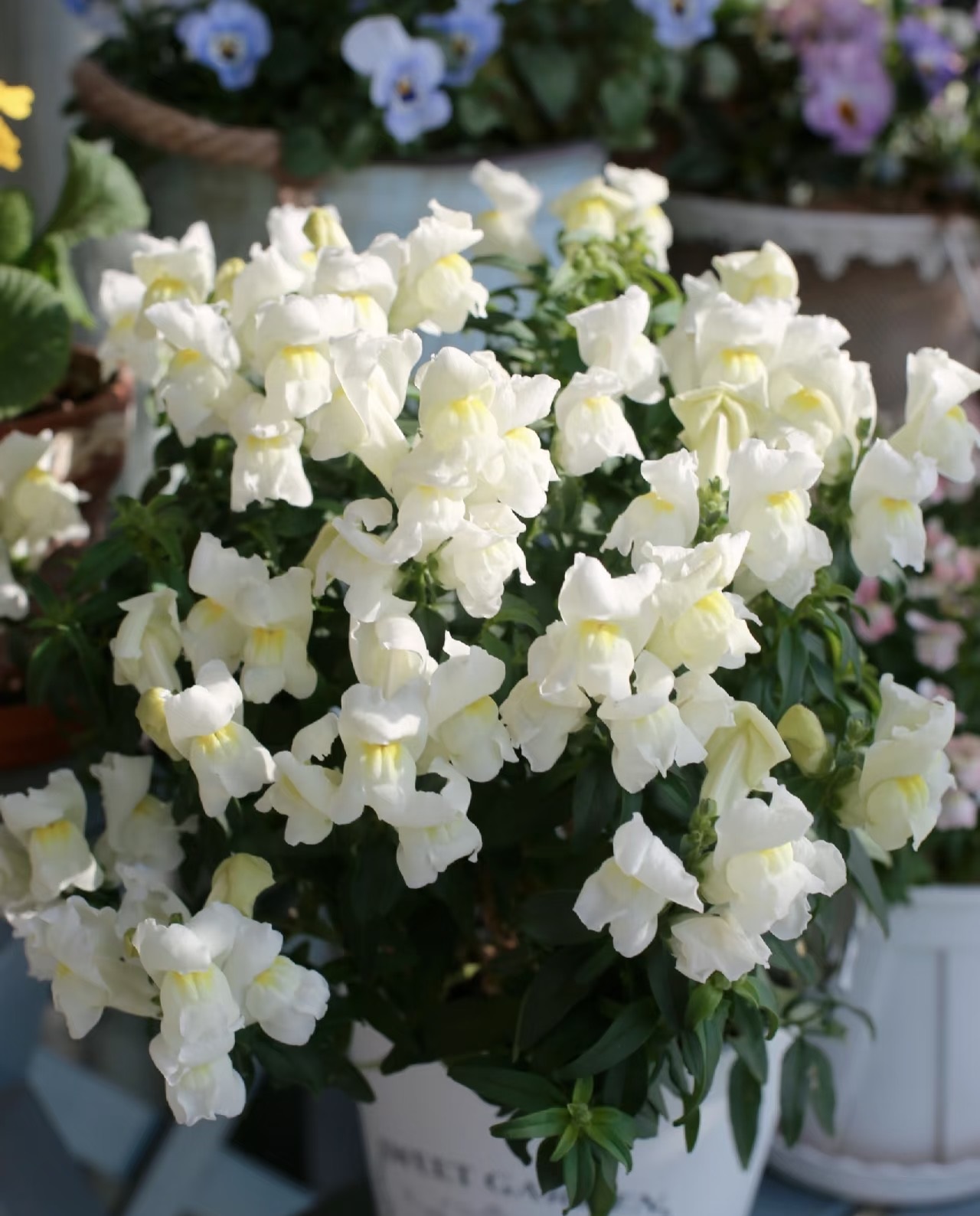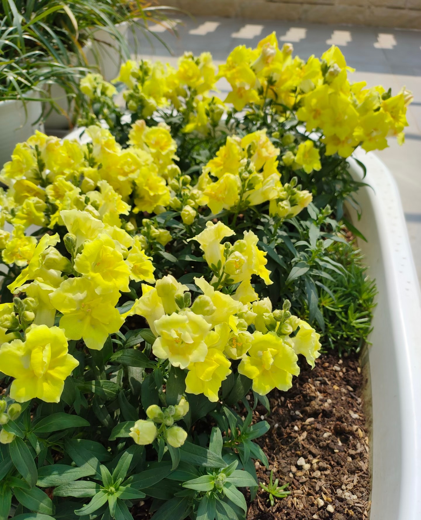 重瓣金鱼草有两个“版本”,一个是高个子的,株高能达到40-50厘米,叫“切花金鱼草”,主要用于鲜花花材供应;一个是矮一点的,只有20-35厘米高,主要用于盆栽观赏。家里有院子、能够地栽的可以选择前者,阳台花友就选后者,不占地方,巴掌大的花盆就能养。
