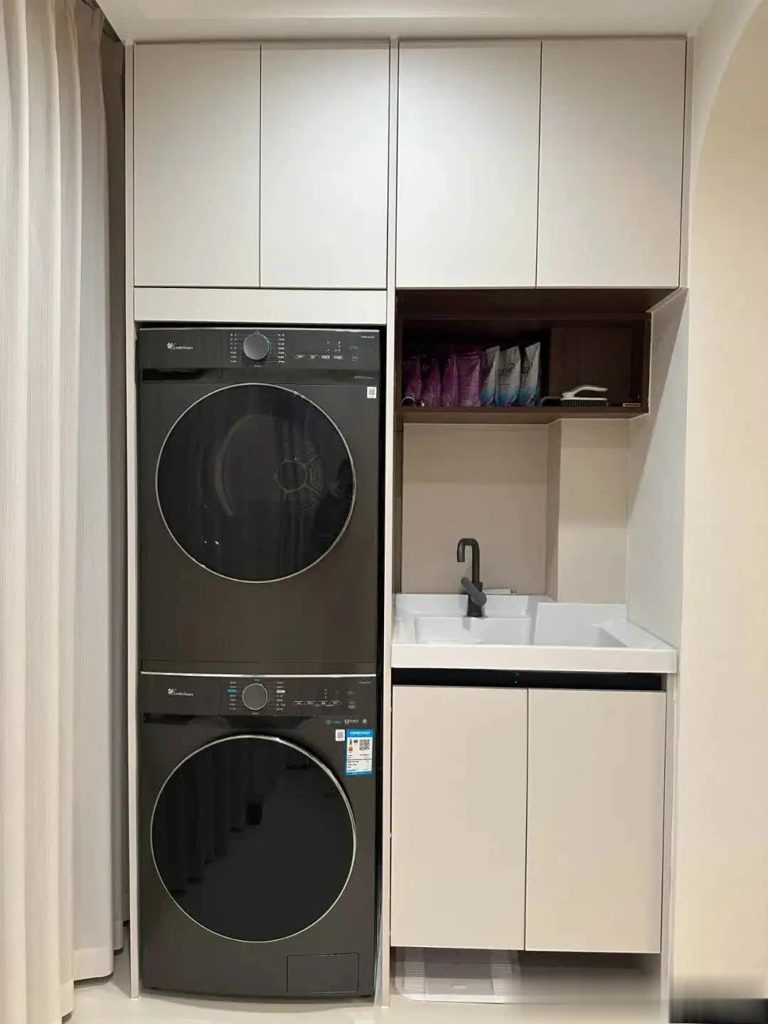 木质板材再防潮,也扛不住阳台的日晒雨淋。建议直接选铝制或不锈钢洗衣柜,防水防潮,用10年都不会变形,清洁起来也简单,抹布一擦就干净,性价比远超木质柜。