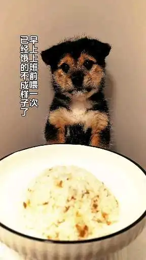 小奶狗饿到不行!早餐肉末拌饭吃得真香!