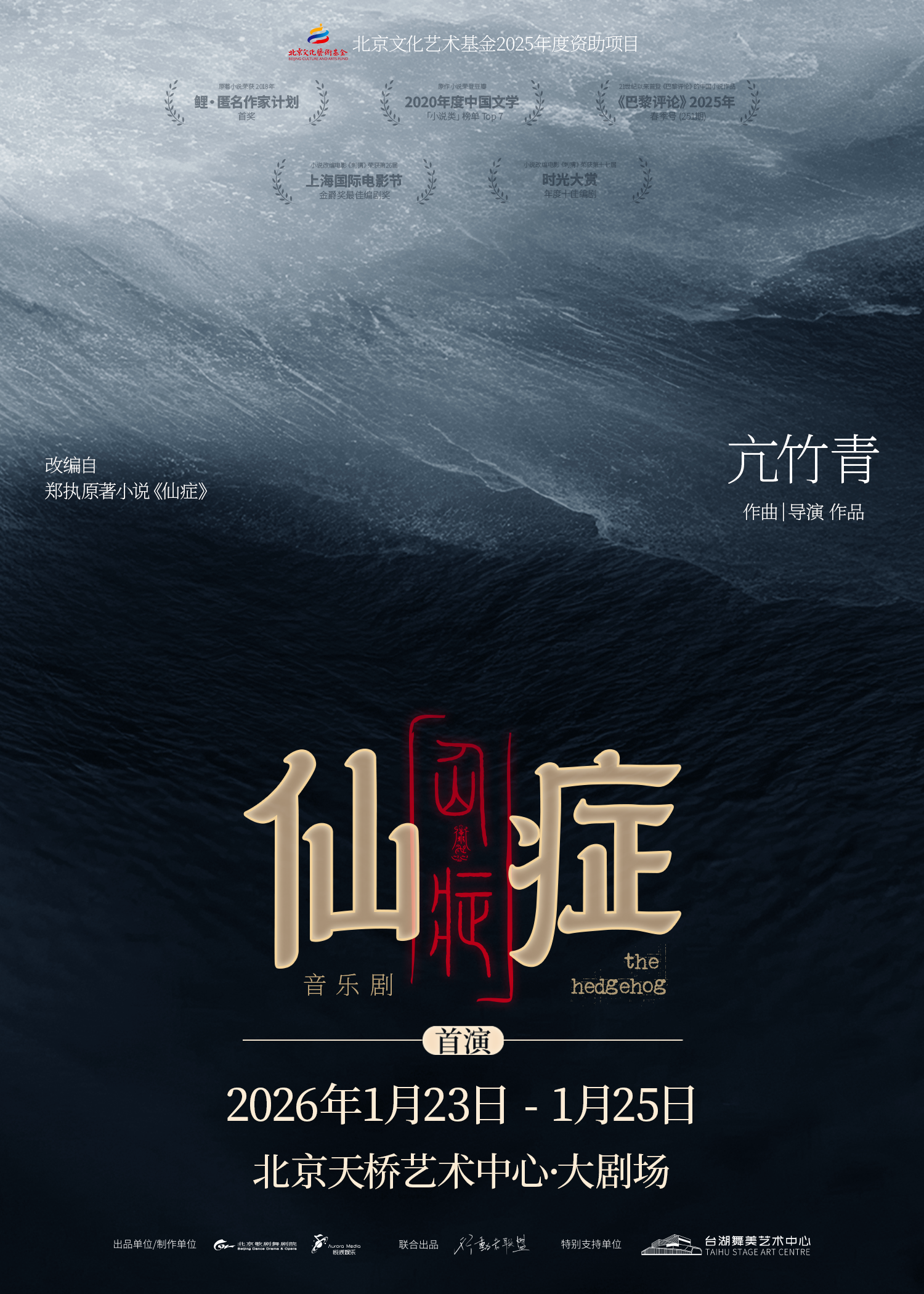 《仙症》原作以其冷峻而悲悯的笔触广受赞誉。音乐剧在忠于文学内核的基础上,通过综合舞台艺术进行创造性转化,围绕被世俗带有偏见的前海员王战团与口吃少年沈洋之间的相遇与救赎,展开一段关于理解、勇气与生命韧性的动人叙事。作品着力于在音乐戏剧中注入现实主义的人文观察,回应时代精神议题。作为北京文化艺术基金2025年度资助项目,该剧由北京歌剧舞剧院、北京悦辰娱乐有限公司出品,北京悦辰娱乐有限公司制作,北京行动者文化传媒有限公司联合出品。