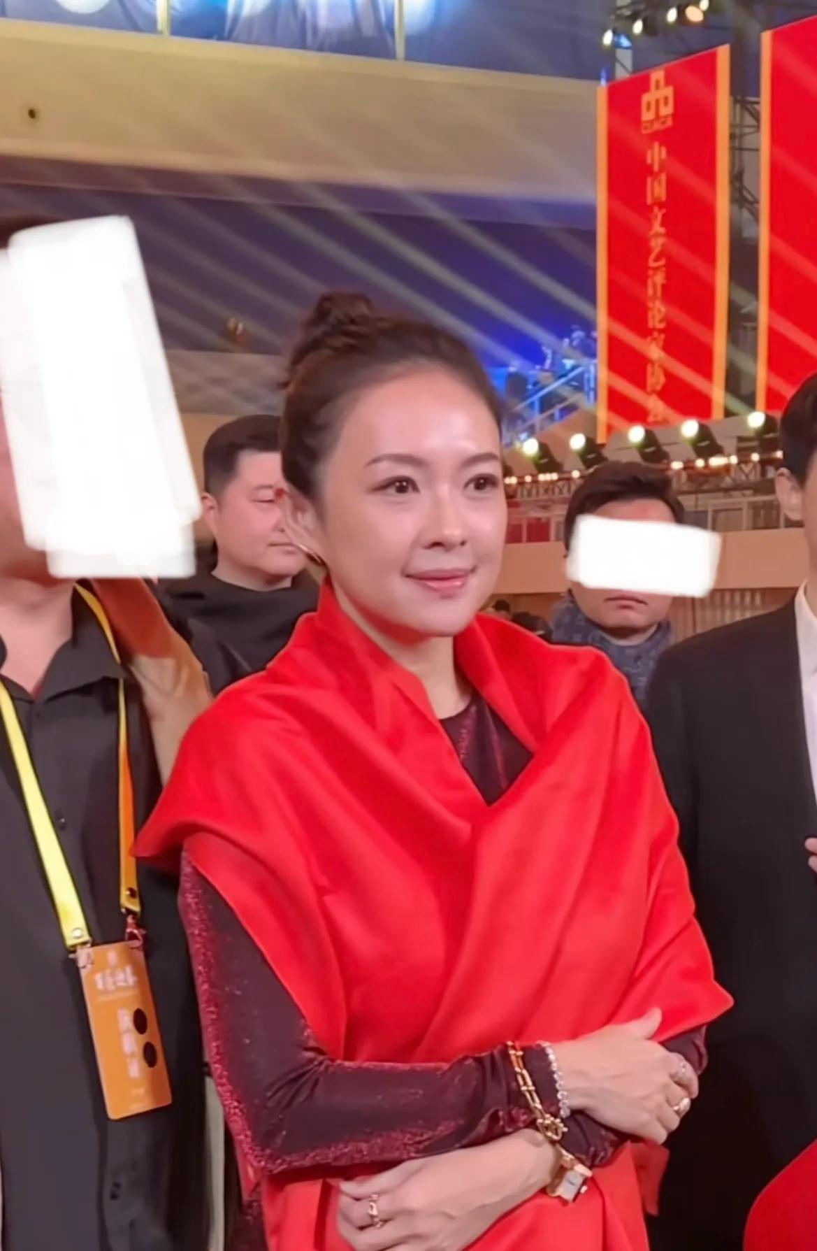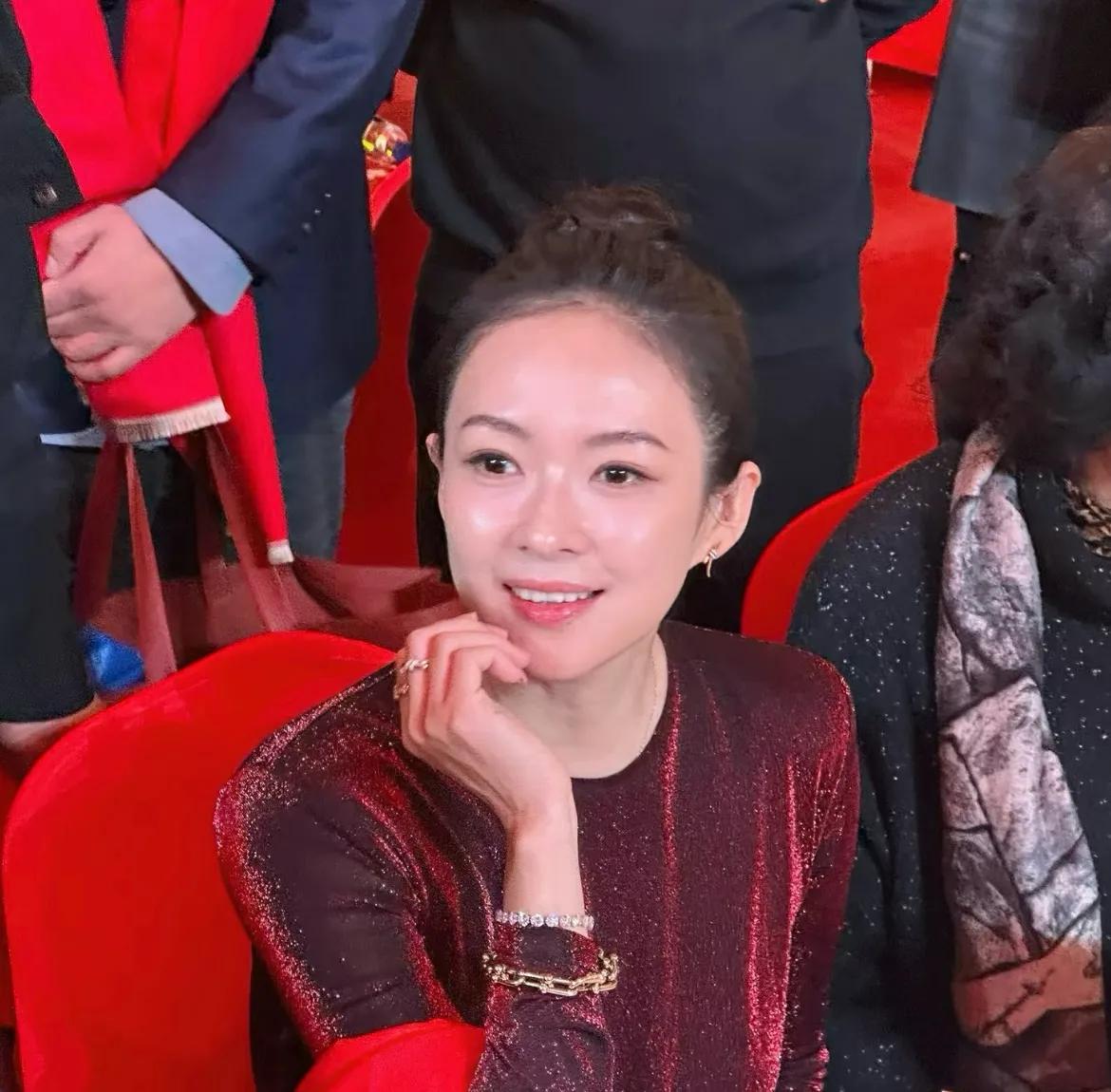 百花迎春晚会录制现场,章子怡的座位安排在核心桌,旁边是李雪健这样的活标杆,还有吴京这种中国电影的中坚力量。