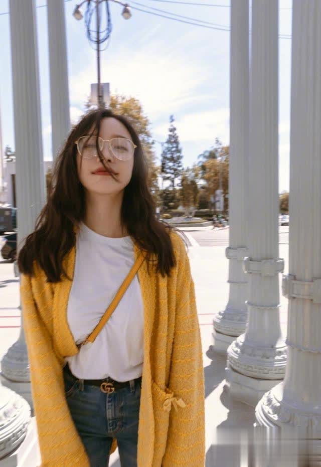 街拍女王倪妮,在穿搭这方面也是很在行,姜黄色针织开衫,搭配白色打底上衣,姜黄色是很显肤色白的一个颜色。