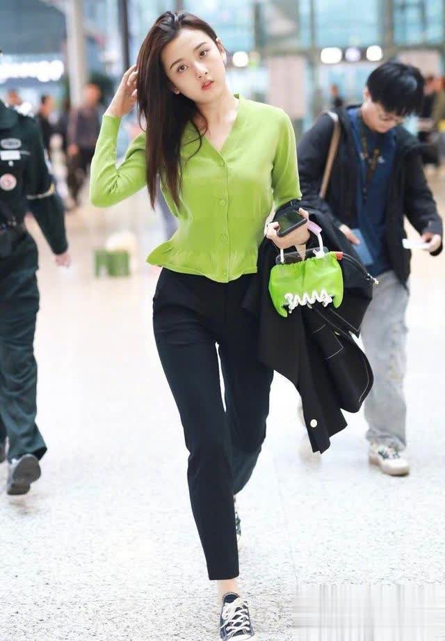 除了紫色,嫩绿色也是很有春天气息的颜色,宋祖儿这件绿色针织衫,不仅很提亮肤色,而且处处充满小细节。