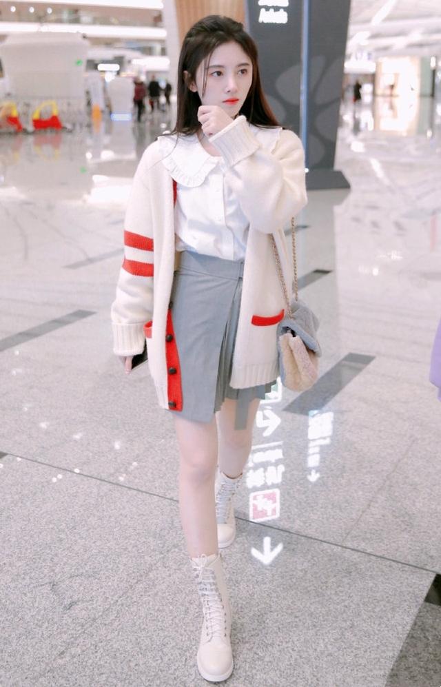 白色的娃娃领衬衫+灰色的不规则剪裁A字裙,下面穿白色的高帮马丁靴,外面套一件米色的毛衣。无论是温柔软糯的配色还是精致利落的搭配,处处都凸显着衣品质感的高级。清新文雅还带着点浑厚的书院绅士风,让人的心都完全的放松了下来,这个"超模腿"和"牛奶肌"一展露,猫姐真的要羡慕死了。