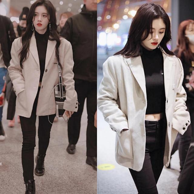 梨形身材的妹子也可以在外面加一件米色的西装外套,正好遮住臀部的部位,从后面看,显腿细身材好;前面看,潮流时尚又带着点傲人的轻熟风味。露脐装也为原本枯燥乏味的职场搭配中添入了一丝危险的小性感,又纯又欲的鞠婧祎谁不喜欢呢?