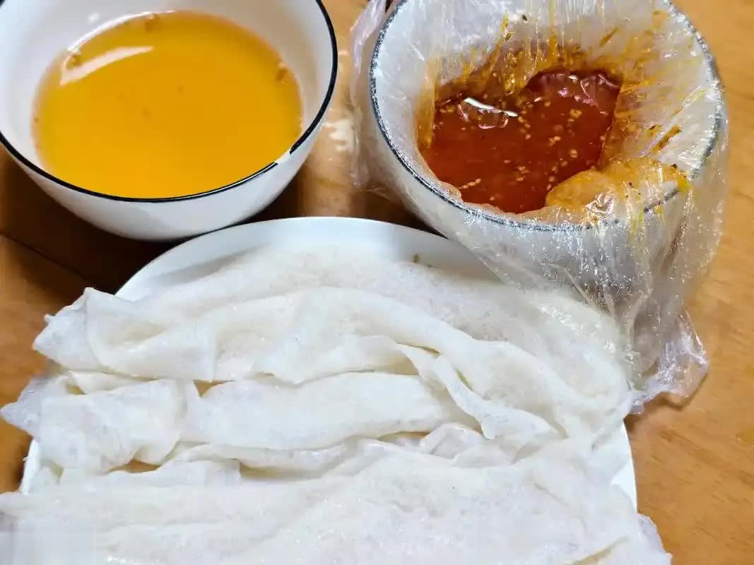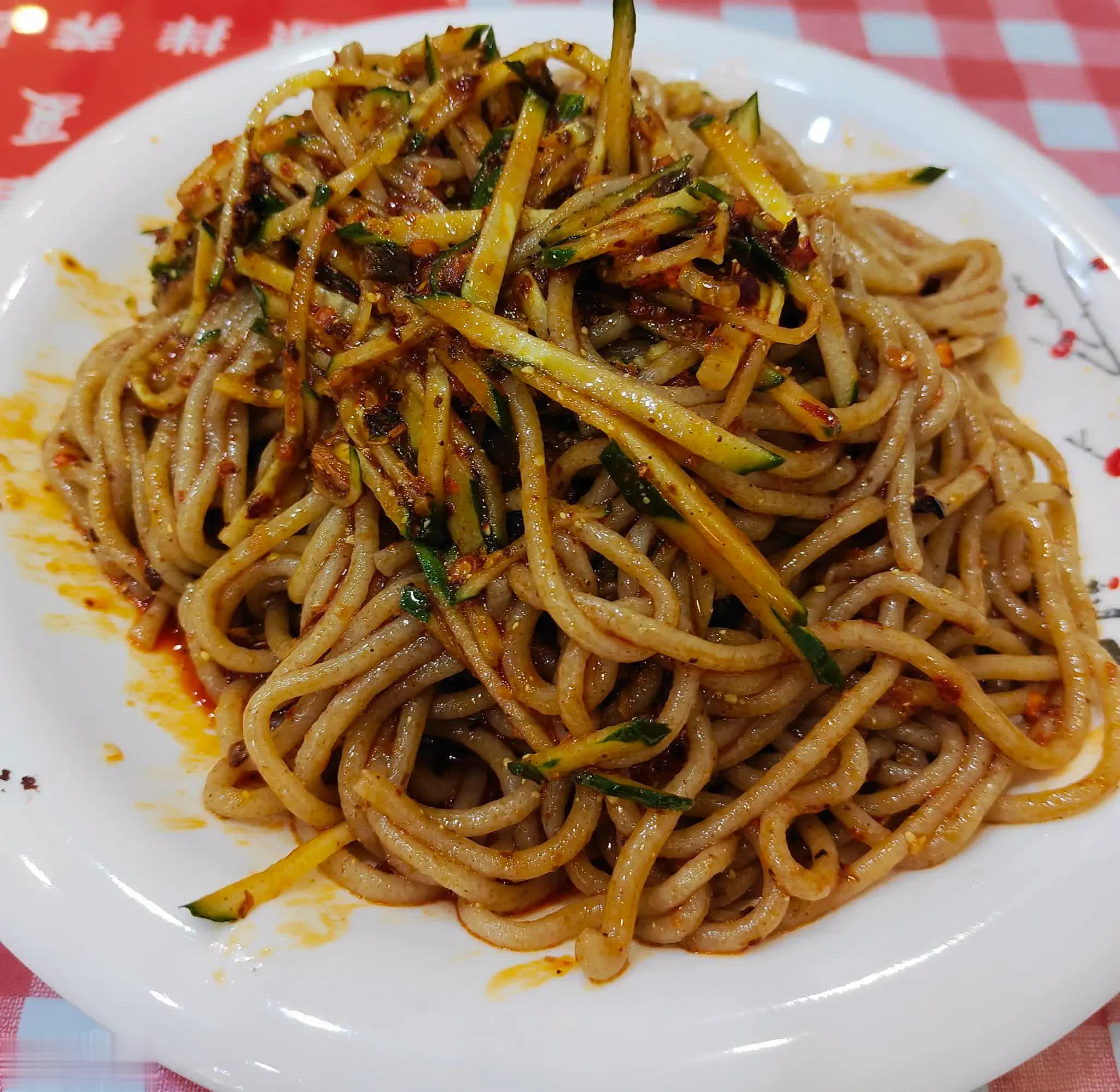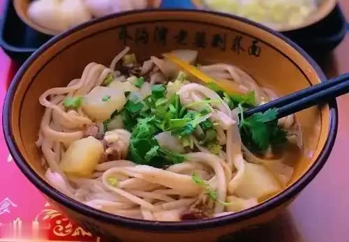榆林人的餐桌上必少不了这碗清爽。旗花面、片粉煮熟过凉,加煮白肉、腌水萝卜、莴笋丝,淋上三椒油、土芥末糊,撒上熟芝麻面拌匀。面皮筋道、片粉软嫩,土芥末的辛香与香醋的酸甜交织,鲜蔬脆嫩解腻,五味调和却不杂乱。老榆林人说这碗面是夏日的 “清凉剂”,饮酒佐餐皆可,一口下去,暑气全消,藏着古城的节令温情。