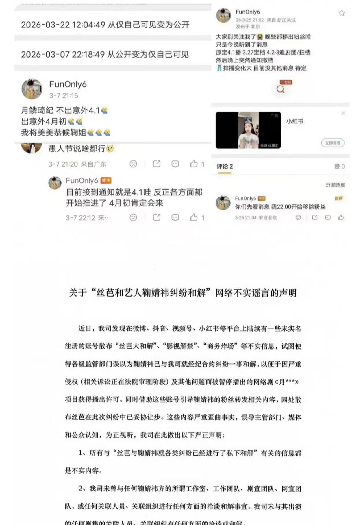 《月鳞绮纪》尚未播出,却已引发诸多关注。先是有瓜主爆料该剧定档,随后又传出撤档消息。如今主演鞠婧祎所在的丝芭传媒发表声明,称与鞠婧祎未达成和解。