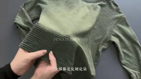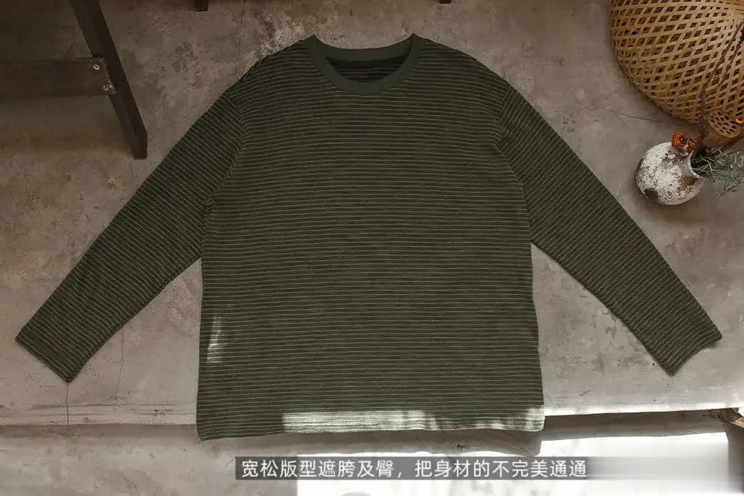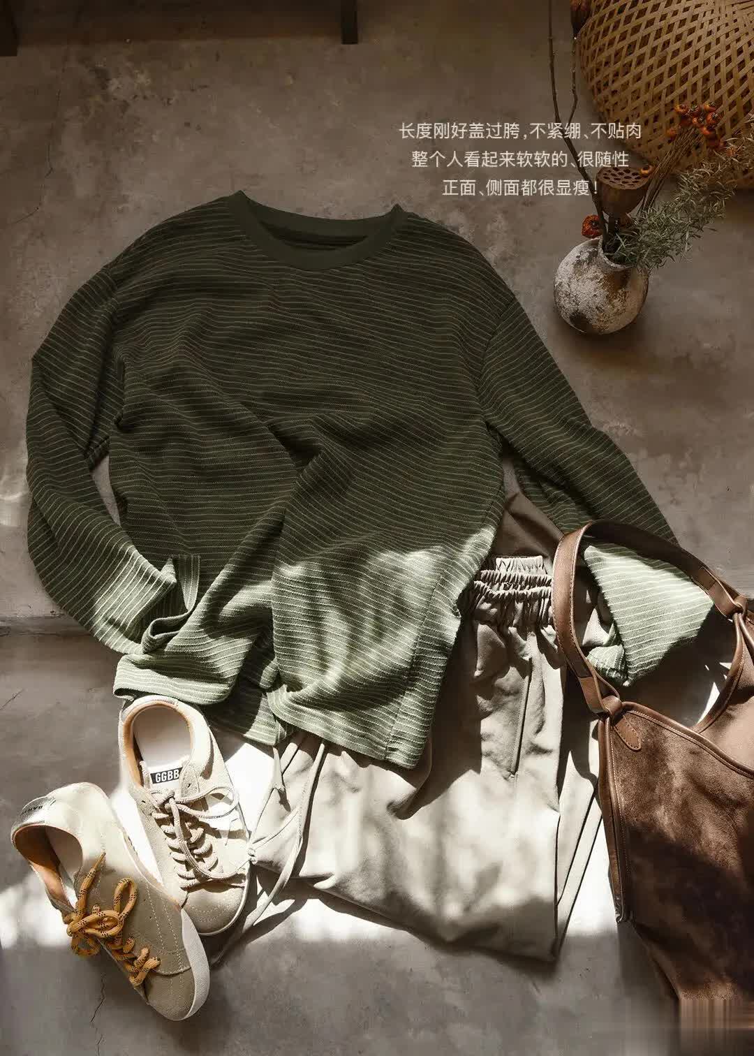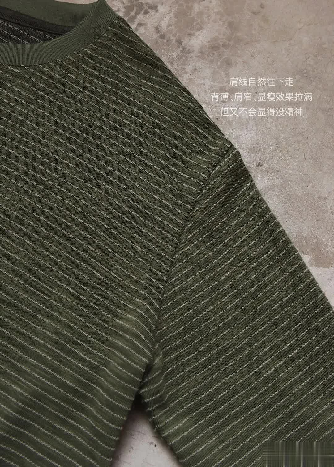 今天给大家找来一件——橄榄绿肌理条纹长袖T恤。