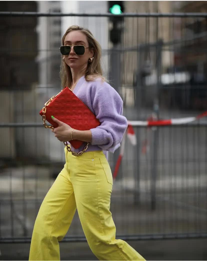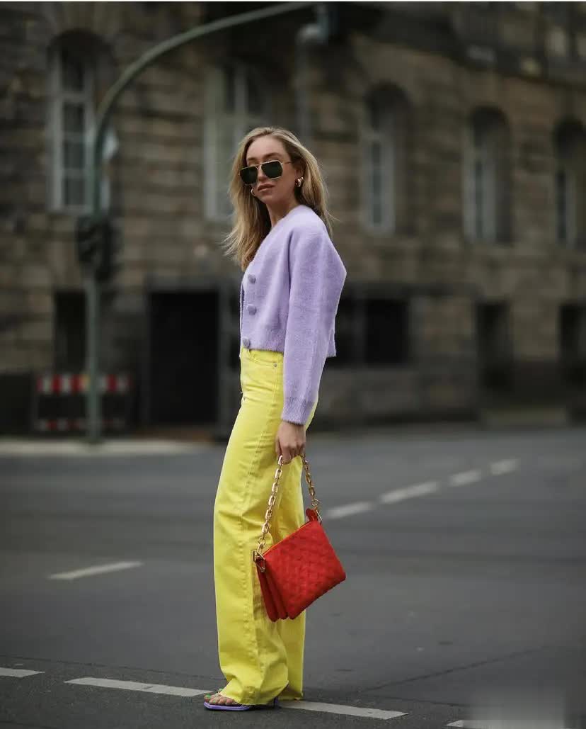 丁香紫+明亮黄,是我们很熟悉的春日花朵的颜色,借助春天里大自然的配色,就能穿得和谐又好看。