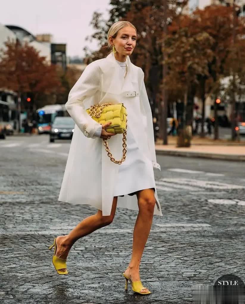 适合职场人的,还有在细节处的一些点缀,德国博主Leoine保持了整体白色系的优雅,但包包与鞋子则用亮黄色装饰,既呼应又提亮,深谙色彩搭配之道。