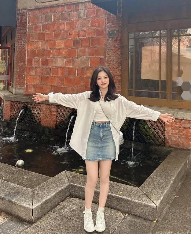 敞开衬衫搭配牛仔料子的包臀短裙,既好看又时髦。尤其是这么搭配,再背个银色链条包来增添精致感,这么一来,不但能丰富层次,还能轻松显出好身材,真是两全其美。
