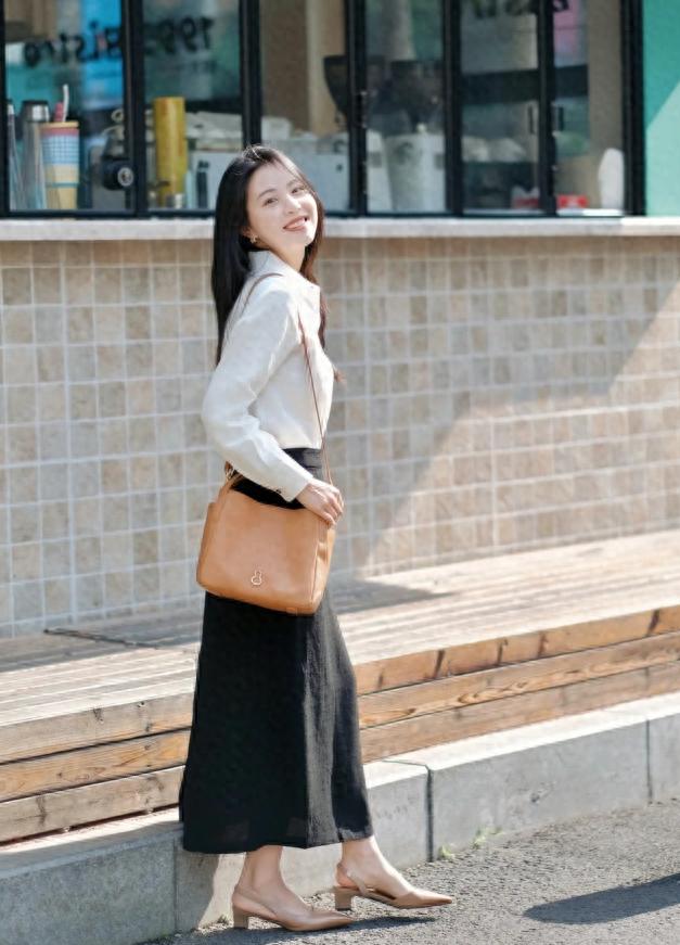 不管是应对职场场景还是休闲场景,一件白衬衫都能满足你的需求,对于那种比较正式的经典款白衬衫,单独穿的时候,建议用半身裙来消除它的严肃感,特别是白色搭配黑色,能让造型比较清新自然,随性十足。