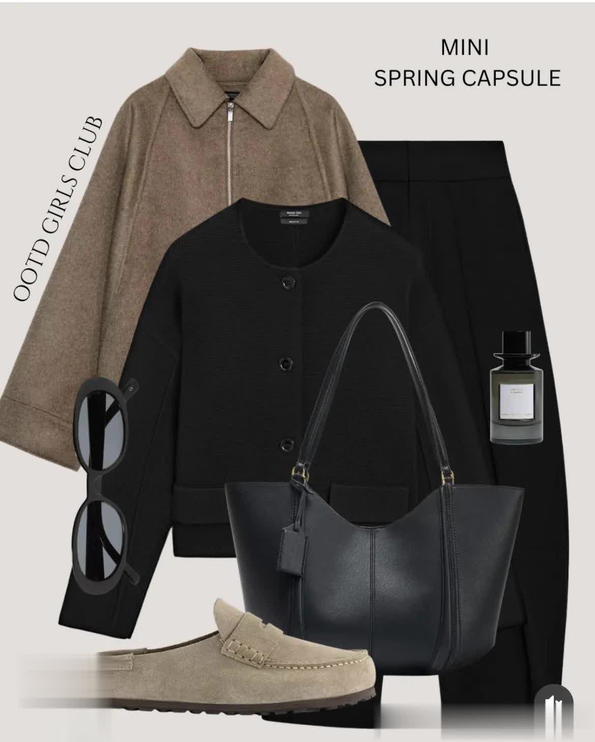 耐看的薄呢夹克,跟浅树皮棕一起穿出质感,用微弧线感的黑开衫配香蕉裤,用轮廓感穿得很有型。