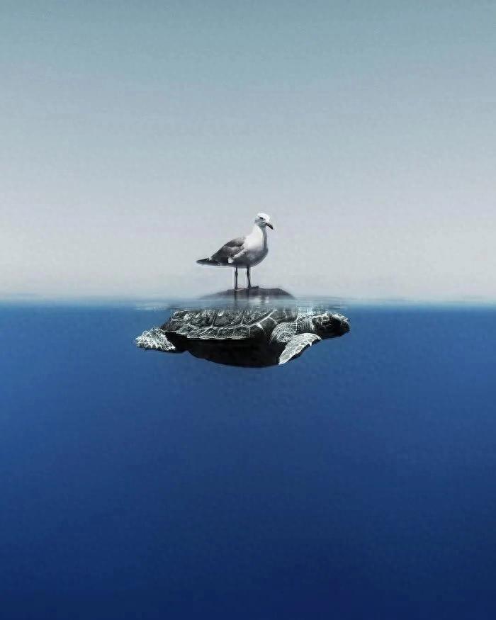 一只海鸥漂浮在西班牙梅诺卡岛的海面上,姿态有些怪异。摄影师Enric Gener开船靠近,才发现海鸥的脚踩在一只海龟背上。他第一反应是海龟死了,跳下水才发现,这只活着的海龟正驮着海鸥慢慢游动。“太 surreal 了。”Gener说。