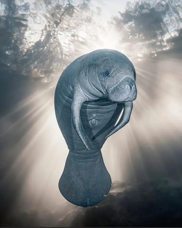 2023 年保护(希望)年度摄影师第一名地点:美国佛罗里达州描述:“我带着一个梦想去佛罗里达:捕捉海牛的美丽影像,”艾耶说。和一位当地朋友一起,我们看到了几只海牛。照片中的海牛靠近看着我,突然正好站在阳光的正前方。我希望这张照片能提高人们对保护这些哺乳动物必要性的认识。”