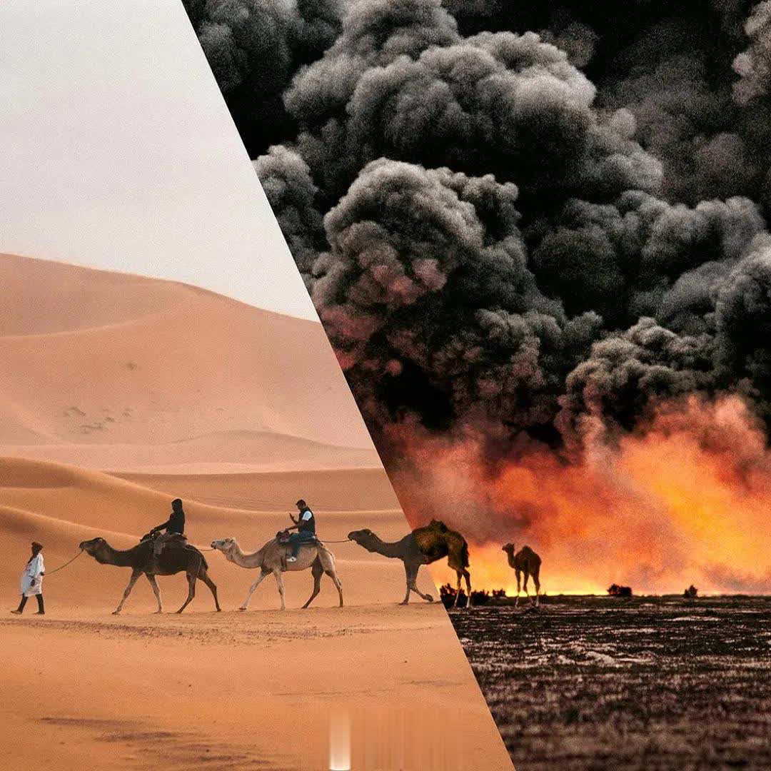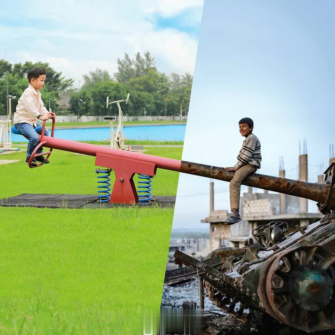 好在,总有人不肯让眼睛习惯这种残忍。土耳其艺术家乌古尔·加伦库什(Uğur Gallenkuş)做了一件事:他把两个世界的照片,硬生生拼到了一起。